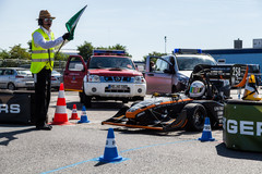 So far, today's Endurance Event has seen 16 successful finishers. All morning the first 45 teams of Formula Student Germany 2016 have competed on the 22 km long racetrack to test the durability of their cars. The later we get in the event, the faster are the cars. The final of the 5 best teams will take place late this afternoon. The 5 finalists are: Car 1 University of Delft, Car 23 Amberg OTH, Car 33 ETH Zurich, Car 68 Karlsruhe KIT and Car 201 Corvallis OSU.