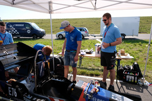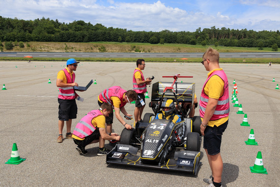 The Formula Student team Einstein Motorsport of the Ulm University of Applied Sciences prepares its vehicle for the course.