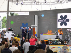 At the opening of the IdeenPark on the 20th of May with Christian Wulf, the minister president of Lower-Saxony, and Ekkehard Schulz, the Thyssen-Krupp Manager, Formula Student Germany was represented by TU Munich and their race car at the plaza stage. In the afternoon two students were interviewed by the WDR’s TV-presenter Ranga Yogeshwar and gave answers and information about Formula Student.