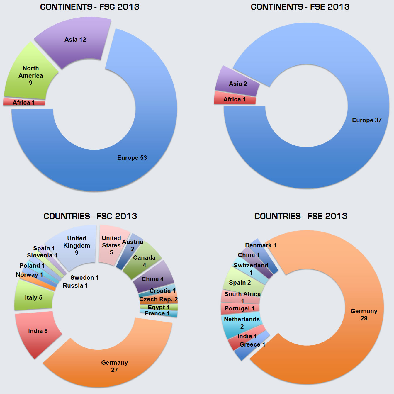 We are very happy to see that so many overseas teams have registered for FSC 2013, 4 Chinese teams, 8 Indian teams, as well as 1 Egyptian team, 4 Canadian teams and 5 teams from the USA. Likewise we are very pleased to see a Chinese, an Indian and a South-African team to have registered for Formula Student Electric. This clearly shows that FSE follows the trend seen for FSC.