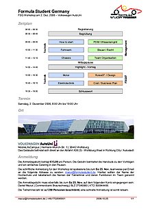 Teams can register now for the FSG workshop by e-mail to mazur(at)formulastudent.de. Registration ends on 25th November 2006. There is a participation fee for handouts and catering of 15€ per person.