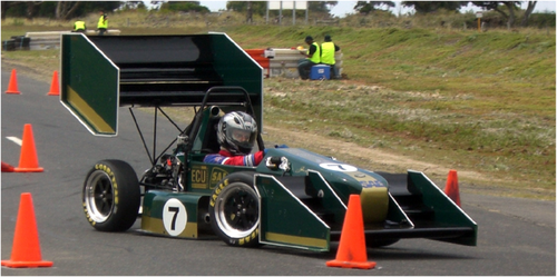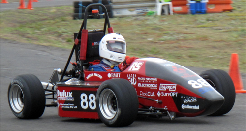 Other Design Finalists were RMIT, Auckland and the Design winners Edith Cowan University from Perth. The RMIT and Auckland cars were reasonably similar in concept, both small composite chassis powered by 450cc single cylinder Yamaha engines, though RMIT were on 10” wheels and Auckland on 13”.