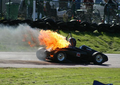 As mentioned earlier, fire is a more likely accident, so we do our best to avoid this becoming an issue. Rules regarding fire extinguishers, firewalls, fire suits etc are part of the organiser’s efforts to address the fire risk, yet cars still catch fire! That is why we have a 5 second egress rule. If you can get out of the car in 5 seconds at technical inspection, you will egress in 2 seconds if the car is on fire!