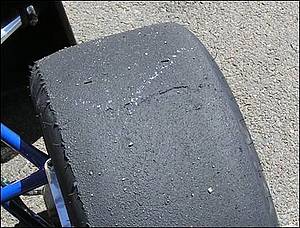 Fig 4. This overheated tyre probably caused by using a compound that was too soft for the conditions.